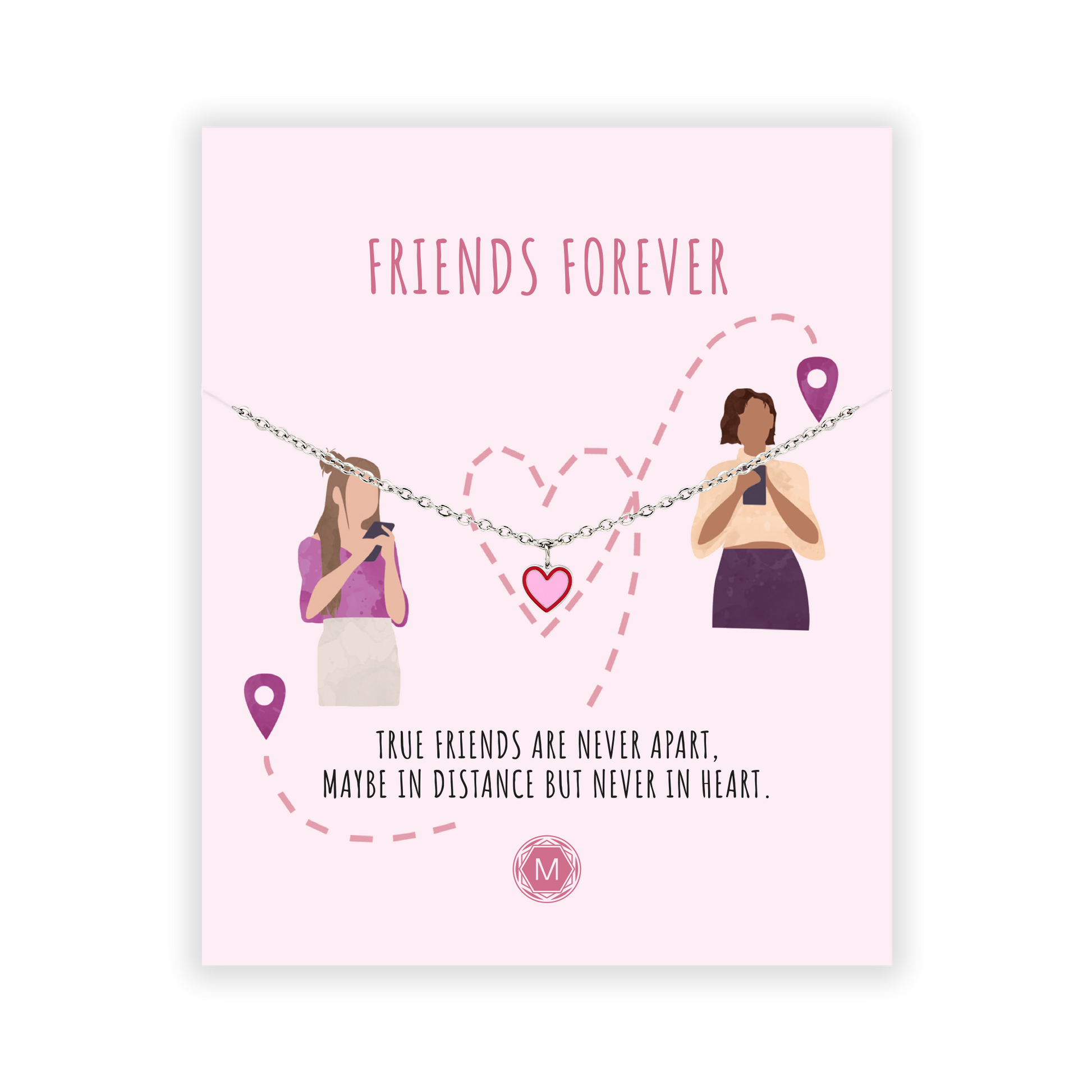 A volte la vita vi conduce in luoghi completamente diversi, e a volte questi luoghi sono molto lontani. Ma la vostra amicizia non conosce confini né distanze, e indipendentemente dai chilometri che vi separano, sarete sempre BFF! Con il nostro braccialetto 'FRIENDS FOREVER', puoi mostrare alla tua migliore amica a distanza quanto è importante per te e che non siete mai davvero separate.