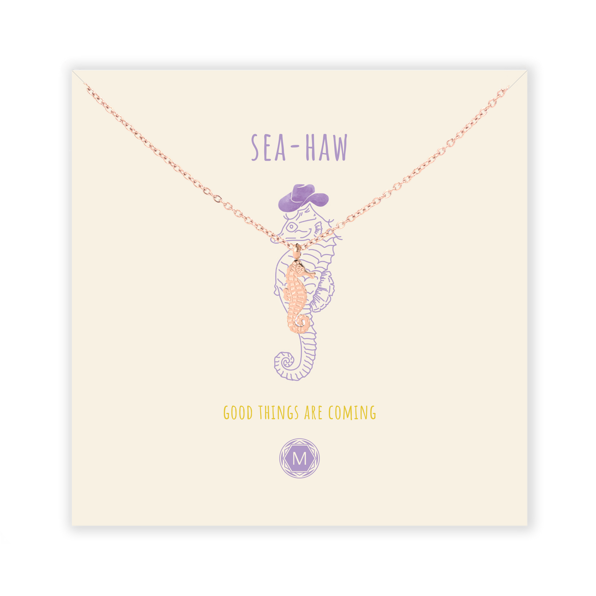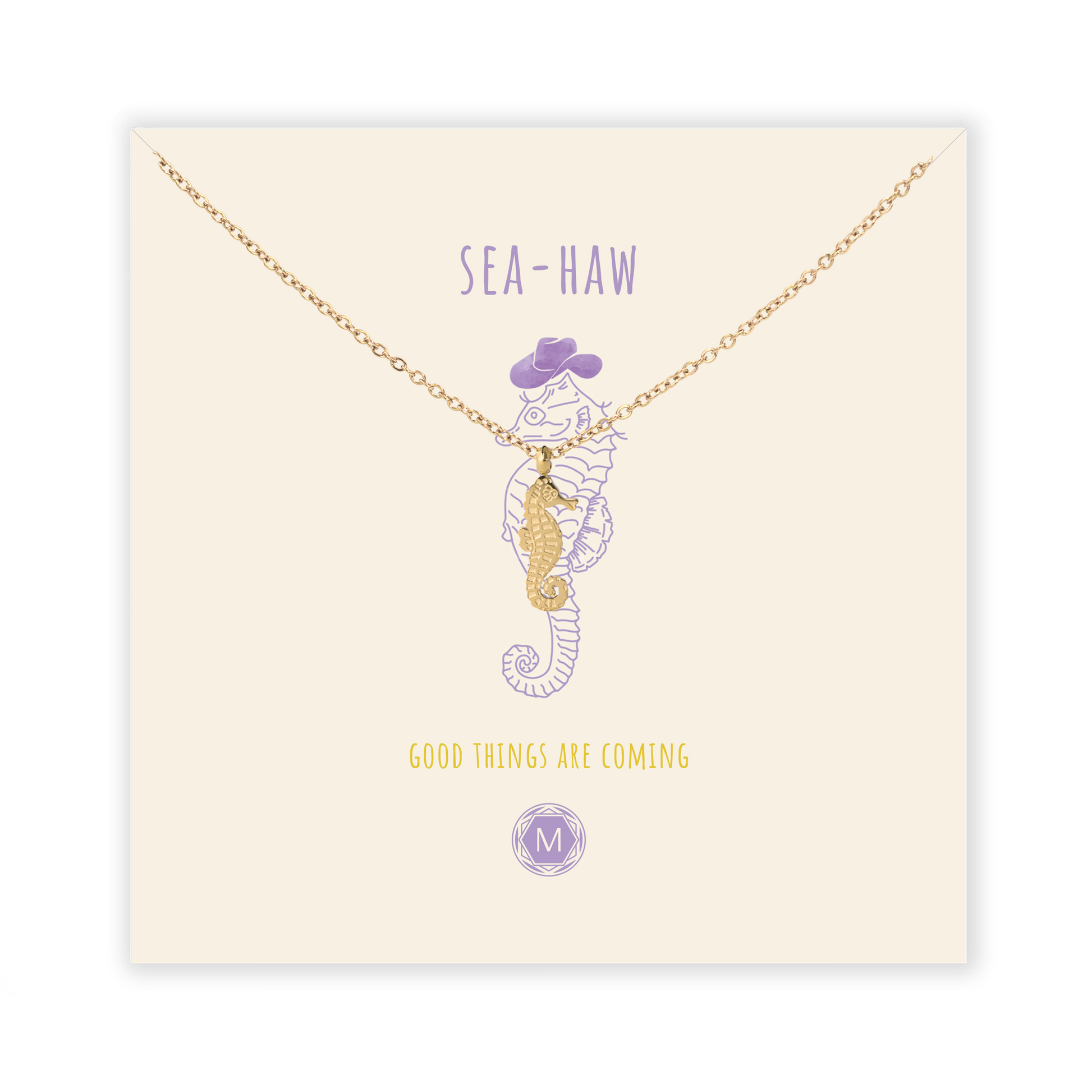 La nostra collana 'SEA-HAW' è un vero colpo d’occhio e diventerà sicuramente il tuo nuovo pezzo preferito. Il dolce ciondolo a forma di cavalluccio marino è piccolo e discreto, ma comunque davvero speciale. Indossala tu oppure regalala a chi ama il mare e i suoi meravigliosi abitanti! E non dimenticare mai: Good things are coming!