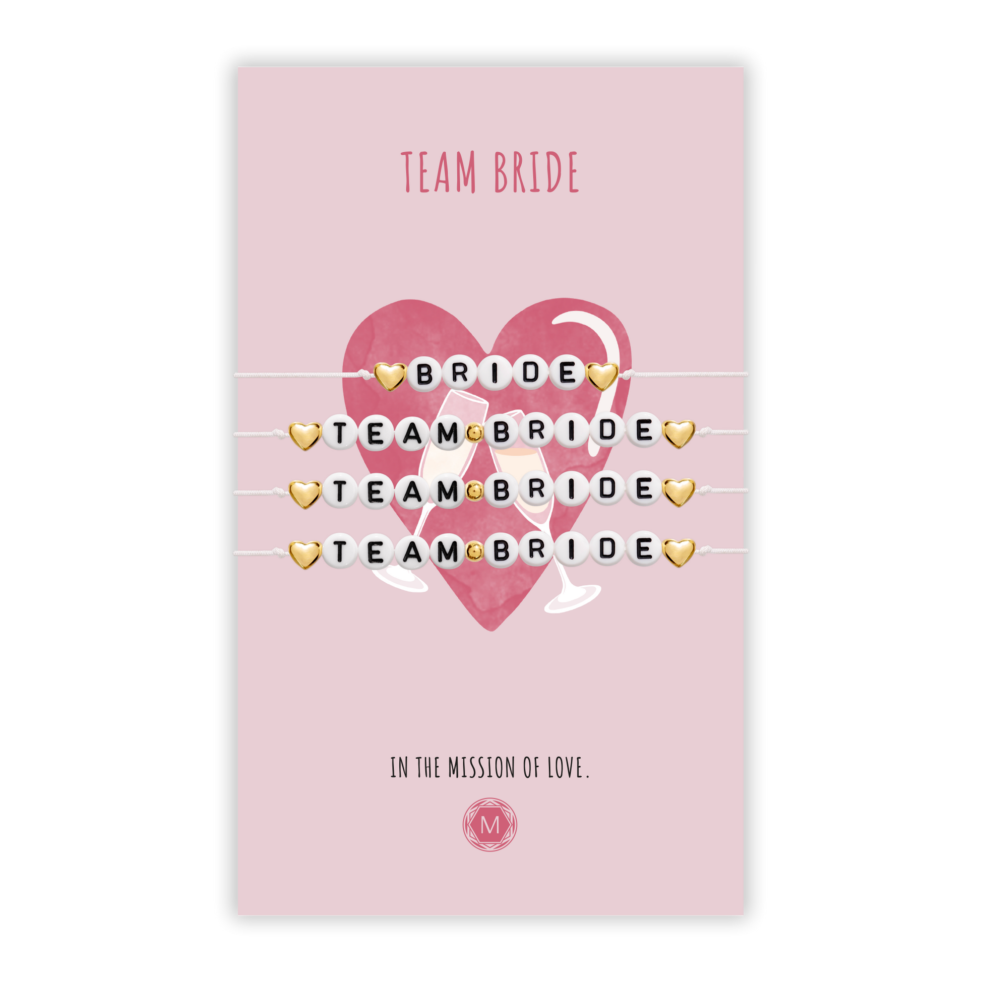 Le damigelle d'onore hanno una missione: sostenere la sposa nel giorno più importante della sua vita e organizzare la migliore festa di addio al nubilato di sempre! Con il nostro braccialetto 'TEAM BRIDE' nei set da 2, 4, 6 o 8, siete perfettamente equipaggiate e potete unirvi come gruppo con un accessorio carino. Il regalo perfetto per la sposa e la sua girl gang per una serata indimenticabile - nella missione dell'amore!