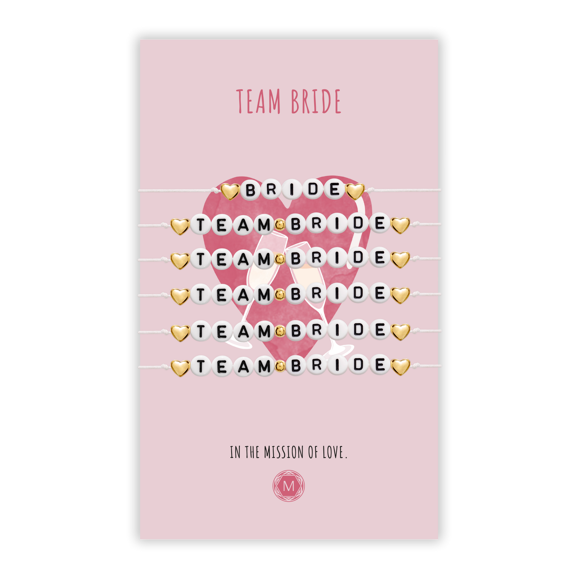 Le damigelle d'onore hanno una missione: sostenere la sposa nel giorno più importante della sua vita e organizzare la migliore festa di addio al nubilato di sempre! Con il nostro braccialetto 'TEAM BRIDE' nei set da 2, 4, 6 o 8, siete perfettamente equipaggiate e potete unirvi come gruppo con un accessorio carino. Il regalo perfetto per la sposa e la sua girl gang per una serata indimenticabile - nella missione dell'amore!