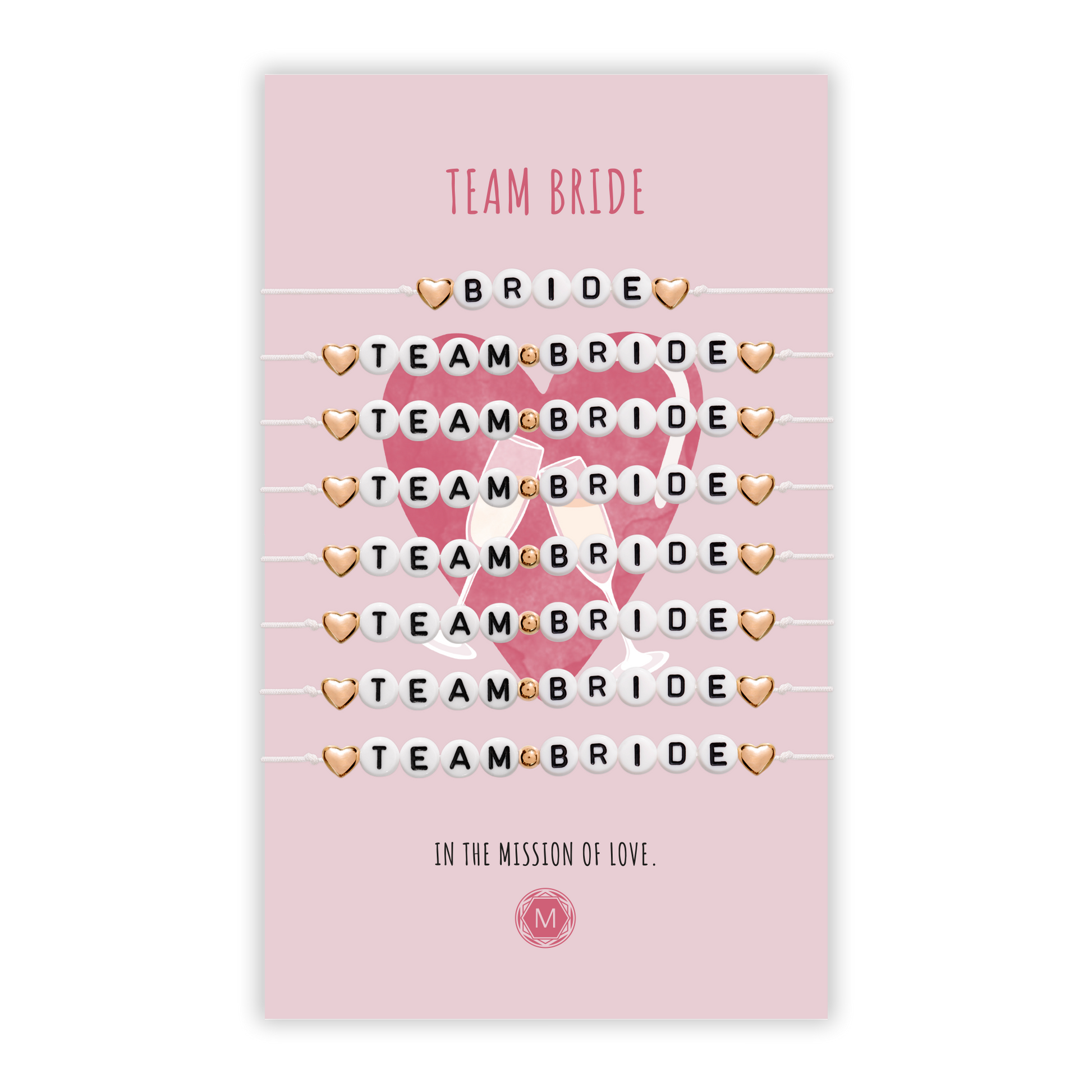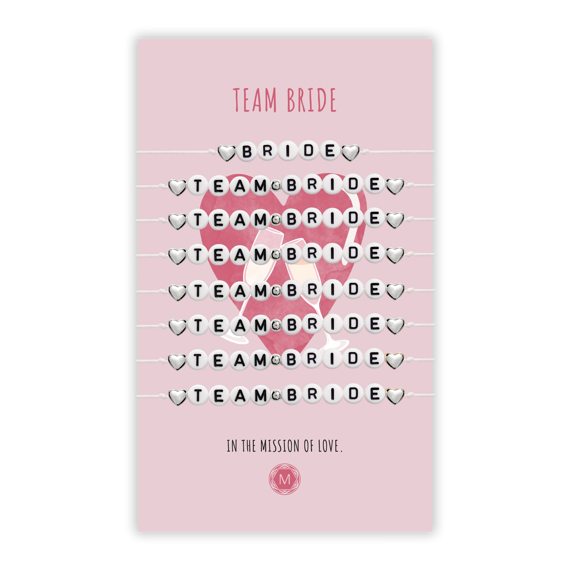Le damigelle d'onore hanno una missione: sostenere la sposa nel giorno più importante della sua vita e organizzare la migliore festa di addio al nubilato di sempre! Con il nostro braccialetto 'TEAM BRIDE' nei set da 2, 4, 6 o 8, siete perfettamente equipaggiate e potete unirvi come gruppo con un accessorio carino. Il regalo perfetto per la sposa e la sua girl gang per una serata indimenticabile - nella missione dell'amore!